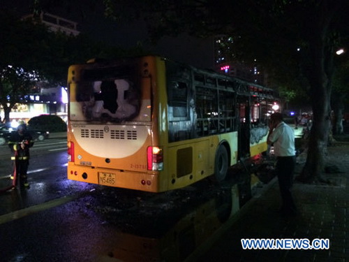 Des photos publiées sur Weibo.com ont montré de hautes flammes ainsi que les débris de l'autobus.