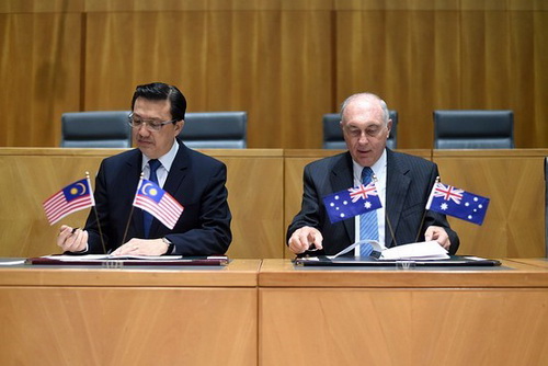 | Les ministres Liow Tiong Lai et Warren Truss. |