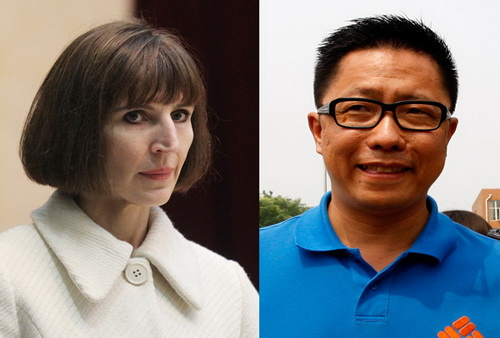 | Li Yang (à droite), célèbre pour sa méthode d'apprentissage de langue "Crazy english", et son ex-femme américaine Kim Lee. |