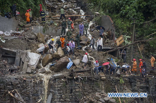 Plus de 500 secouristes professionnels, dont des pompiers et la police armée, ont évacué plus de 7.000 habitants de neuf bourgs balayés par les pluies dans le district de Yunyang, a indiqué le centre de secours local.