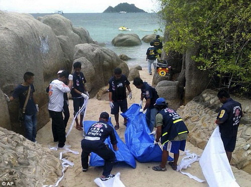 Koh Tao est une ?le située dans la province de Surat Thani, connue pour ses sites de plongée et ses plages calmes. La police a fermé l'unique jetée de l'?le -qui n'est accessible que par bateau- dans l'espoir que les assassins soient toujours là. ? L'homme a été frappé dans le dos et sur le c?té de la tête, tandis que la femme a été frappée au visage ?, a déclaré le chef de la police Prachum Ruangthong. ? C'est vraiment horrible ?. Il a précisé que les vêtements des victimes et une houe ensanglantée ont été trouvés près des corps.
