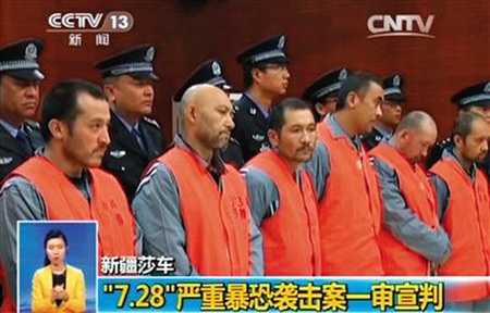 Osman Abulat, Yusup Abulat, Juma Kadeer, Memetiming Amar et huit autres détenus ont été condamnés à mort pour avoir organisé, dirigé et participé à des actions terroristes, ainsi que pour les inculpations d’homicide intentionnel, de production illégale d'explosifs, d’incendie criminel, enlèvement et mise en danger de la sécurité publique avec des méthodes dangereuses.