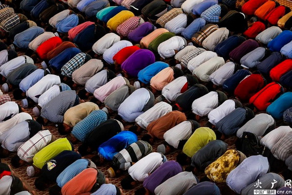 La population musulmane locale de Kuala Lumpur, en Malaisie, prie pour les passagers de l’avion disparu.