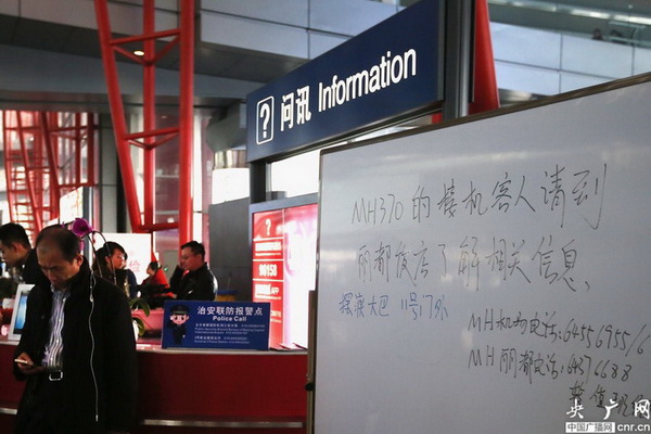 Le 8 mars à 08h44, Malaysia Airlines diffusa une première déclaration : elle confirmait que le vol MH370 avait perdu le contact avec la tour de contr?le le 8 mars à 02h40 heure de Beijing. Les membres des familles des passagers présents à bord furent alors rassemblés dans des h?tels situés à proximité pour attendre des informations sur le vol.