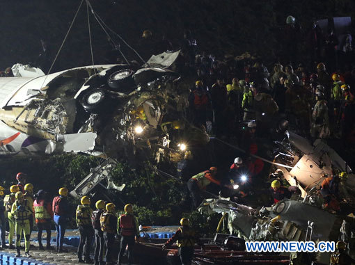 Quinze autres personnes à bord de l'avion ont été blessées lorsque l'appareil ATR-72 a plongé dans la rivière Keelung mercredi à 10h56 après avoir frappé avec son aile un taxi sur une section d'autoroute surélevée, dix minutes après son décollage.