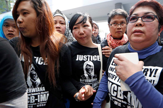 Agée de 24 ans, Erwiana Sulistyaningsih a été mentionnée dans le classement Time100 en 2014 pour sa décision de prendre la parole. Le tribunal a appris que lors de son droit du travail l'a frappée si fort que ses dents en ont été cassées, lui a martyrisé la bouche avec un tuyau d'aspirateur et lui a refusé de la nourriture jusqu'à ce qu'elle n'ait plus d'autre choix que de frapper à la porte d'un voisin à 2h30 pour lui demander de l'aide. Et elle n'a également jamais re?u le moindre salaire de la part de sa patronne.