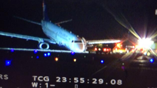 D'après les médias locaux, l'avion a atterri lundi soir avec son train avant rentré à l'aéroport intercontinental George Bush. Il a atterri sur une piste avant de s'immobiliser.