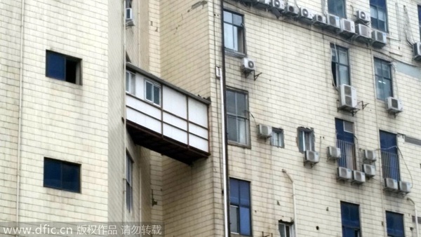 Une chambre construite entre deux immeubles à Chengdu, dans la province du Sichuan, le 9 février 2015. [Photo/IC]