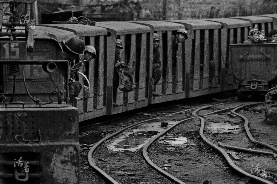 En 1990, des mineurs empruntent un petit train pour entrer dans une mine dans le district de Mentougou, à l'ouest de Beijing. [Photo/news.qq.com]