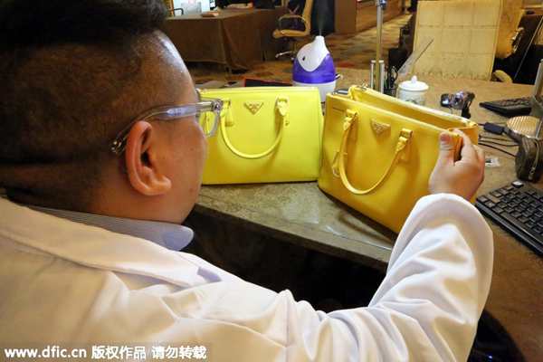 Li Wentao, un inspecteur de produits de luxe fort de ses 11 ans d'expérience, sait reconna?tre en quelques minutes les contrefa?ons des authentiques. [Photo/IC]