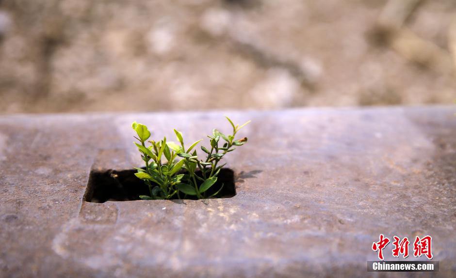 Photo prise le 23 mars. L'herbe pousse dans les fissures d'un rail centenaire. [Photo/Zhang Hao, China News]