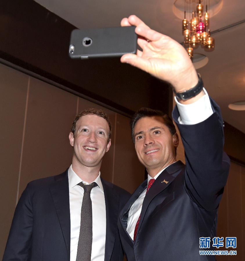 Le président mexicain Enrique Pena Nieto (à droite), qui a participé au ? Summit of the Americas ?, prend un selfie aux c?tés du fondateur de Facebook Mark Zuckerberg à Panama, le vendredi 10 avril.
