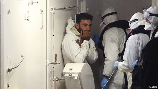 | Un des survivants du naufrage recueilli par la marine italienne. |