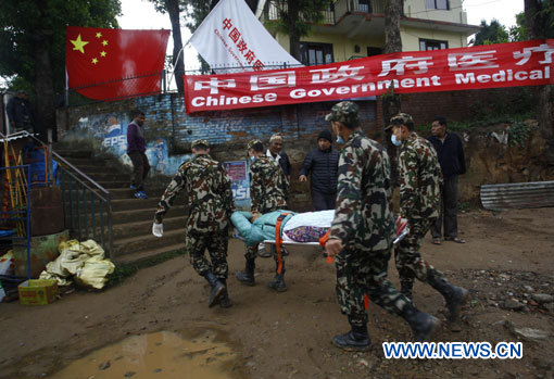 Lundi matin, alors que l'équipe de recherche et de sauvetage chinoise venait de commencer son travail, un contingent médical chinois composé de 58 membres est arrivé à Katmandou.