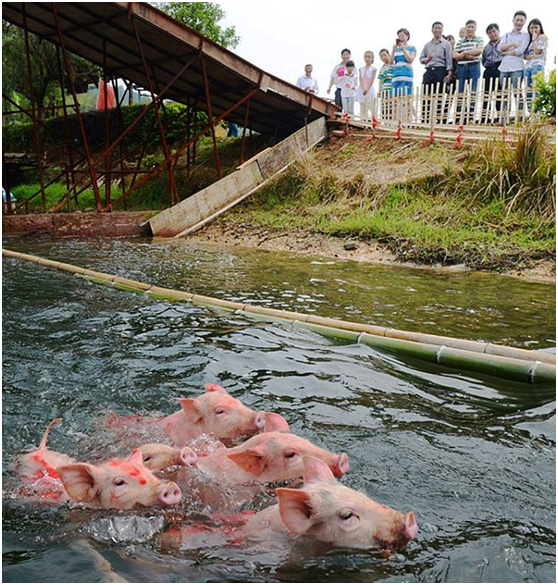 Plouf ! Des cochons se jettent à l'eau dans une compétition de natation acharnée