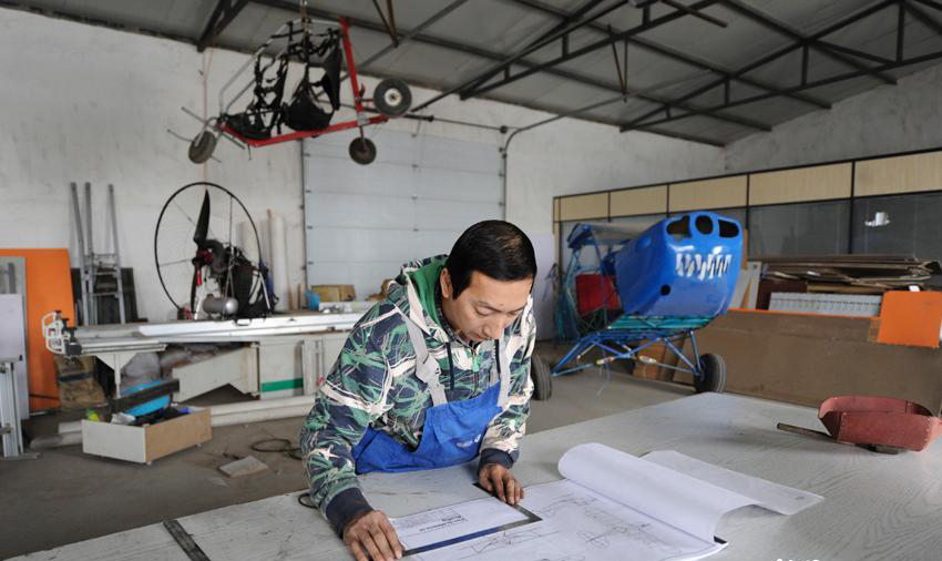 Yang Shijun travaille sur l'appareil de sa propre conception à Changchun, dans la province de Jilin (nord de la Chine), le 10 mai 2015. [Photo/ECNS]