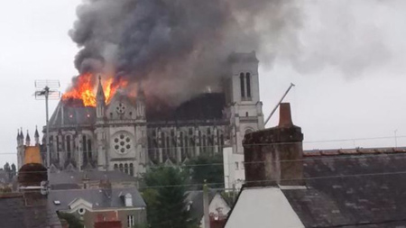 Lundi matin, un violent incendie a éclaté dans la Basilique Saint-Donatien-et-Saint-Rogatien de Nantes juste après la messe du matin, ne laissant, malgré l'intervention rapide des pompiers, qu'une charpente carbonisée. Aucune victime n'est cependant à déplorer, toutes les personnes présentes à l'intérieur ayant été rapidement évacuées, a précisé le père Beno?t Bertrand, du diocèse de Nantes.