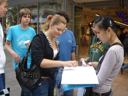 | Les manifestants recueillent des signatures en protestation de l' insulte raciste de Philipp Plein en Allemagne en 2007. [Photo/Weibo] |