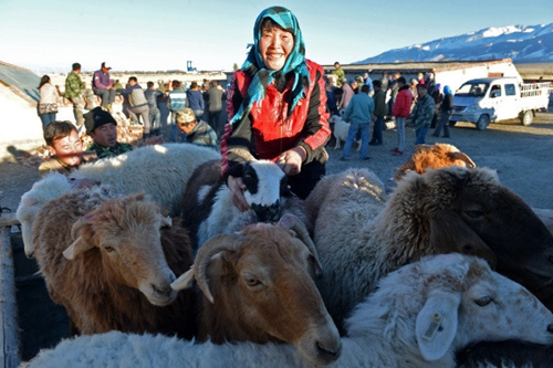 Au Xinjiang, des agriculteurs ont re?u des moutons dans le cadre de la lutte contre la pauvreté.