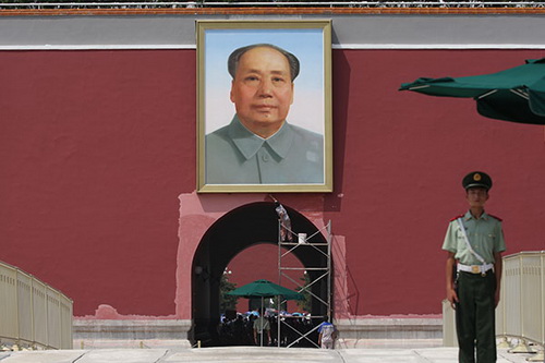 Chaque année, pendant environ un mois, généralement à partir de la fin ao?t, la tribune et d'autres batiments de la place sont repeints à l'occasion de la fête nationale du 1er octobre. Mais cette année, la date des travaux a été avancé.