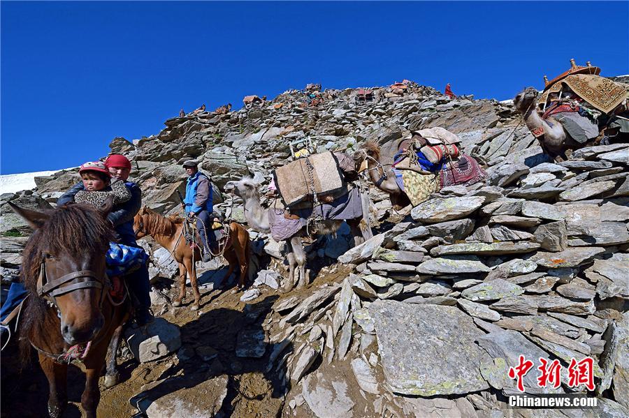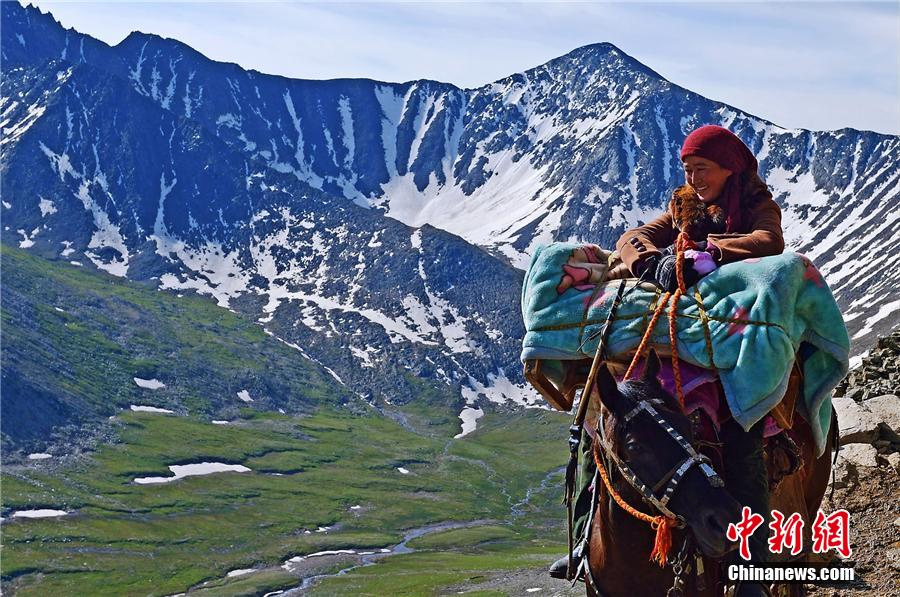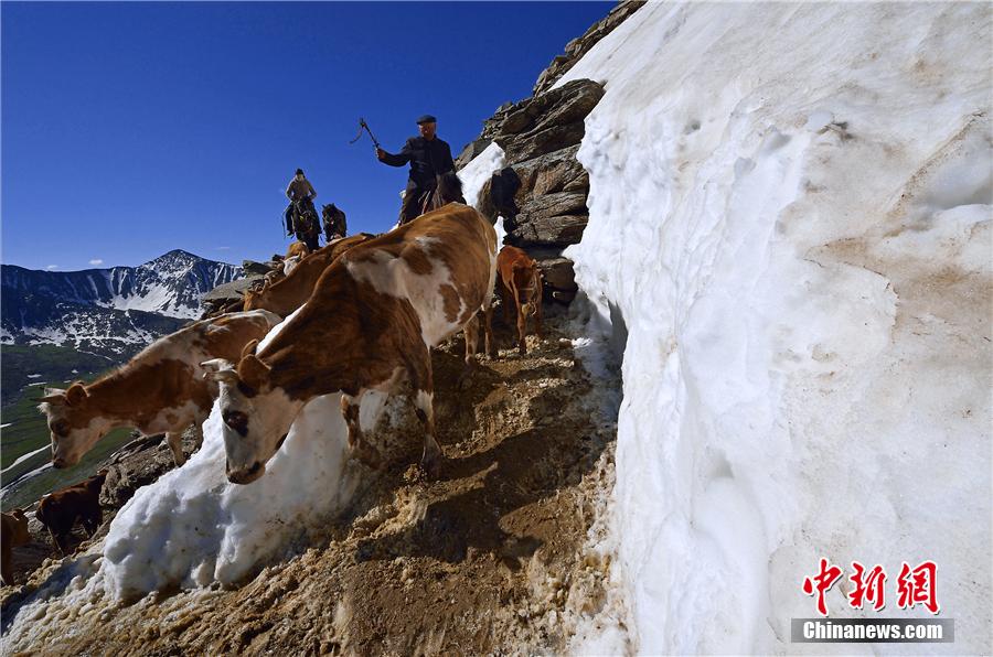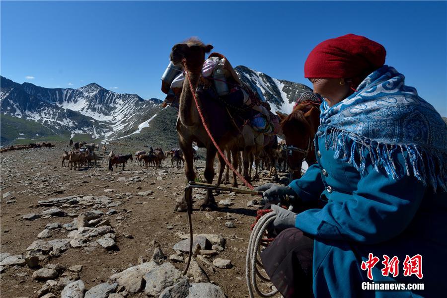 Nous voici dans la dernière décade du mois d'ao?t. Les bergers de l'ethnie kazakhe dans le nord de la préfecture autonome du Xinjiang se déplacent avec leur bétail vers les paturages de printemps et d'automne. Certains photographes les suivent pour documenter leur parcours. Durant la transhumance, le temps change tout le temps. Les agneaux fragiles, les chemins ardus et les monts enneigés composent le paysage unique et splendide du Xinjiang.