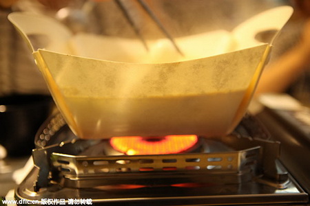 | Un rago?t dans un pot en papier est servi à Shanghai. Image prise le 28 ao?t 2015. [Photo/IC] |