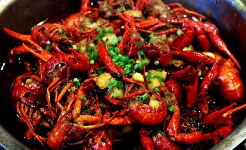 Les petits crustacés sont mijotés dans un bouillon avec des piments et des épices. Du printemps à l'automne, passer une nuit à décortiquer et manger des écrevisses avec des amis ou en famille est un véritable rite. [Photo / Agences]
