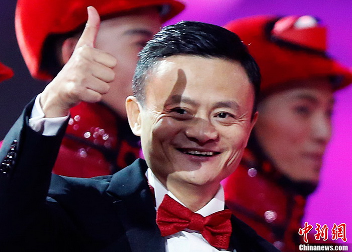 Jack Ma, le fondateur et PDG du groupe d'Alibaba, le pouce levé lors du festival d'achats Tmall 2015, la veille de la journée des célibataires, qui tombe le 11 novembre. [Photo/China News Service]