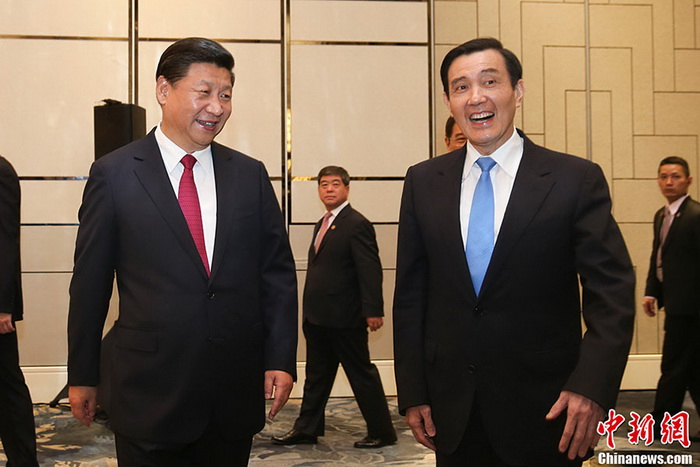 Xi Jinping et Ma Ying-jeou lors de leur rencontre à l'h?tel de Shangri-La à Singapour, le 7 novembre 2015. [Photo/China News Service]