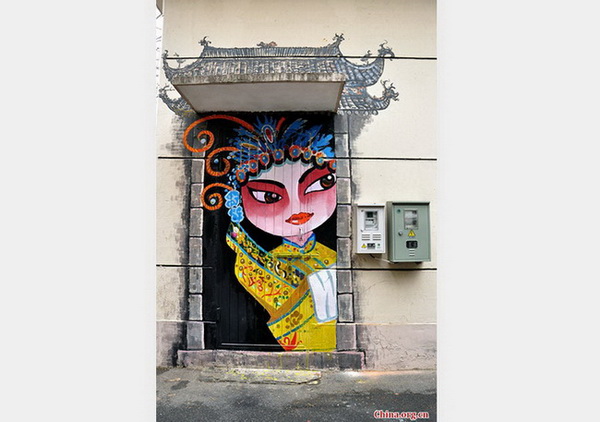 Des graffitis et dessins artistiques ont été découverts dans une zone résidentiel du district de Yangpu, à Shanghai, le 24 décembre 2015. Donnant une nouvelle apparence à ce quartier. [Photo : Zhou Dongchao/China.com.cn]