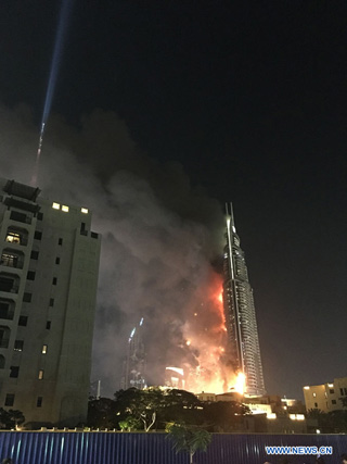 Le feu est survenu vers 21H30, heure locale (17H30 GMT) à l'h?tel Address Downtown à Duba?, proche de la tour Burj Khalifa,le gratte-ciel le plus élevé dans le monde.