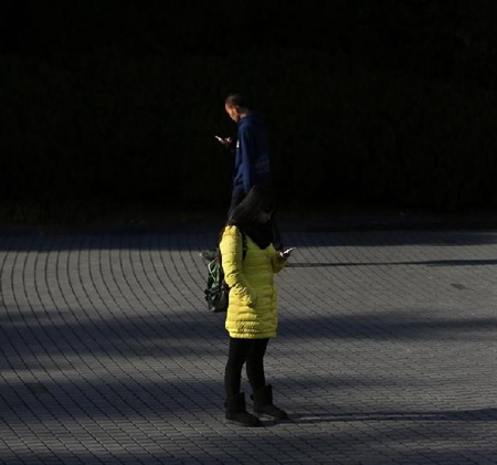 A Shanghai, des piétons le nez dans leur portable, le 17 décembre 2015. Leur téléphone semble plus intéressant que de lever la tête et profiter du beau temps. (Photo/gmw.cn)