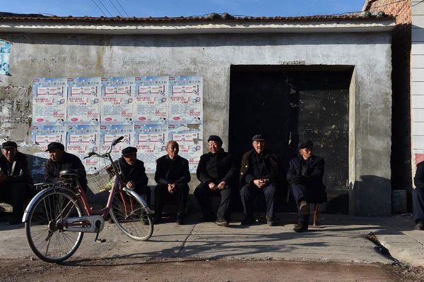 Des personnes agées profitent du soleil dans leur village de la ville de Kuching ville, dans la Province du Shanxi (Nord de la Chine), le 17 février 2016. [Photo / Xinhua]