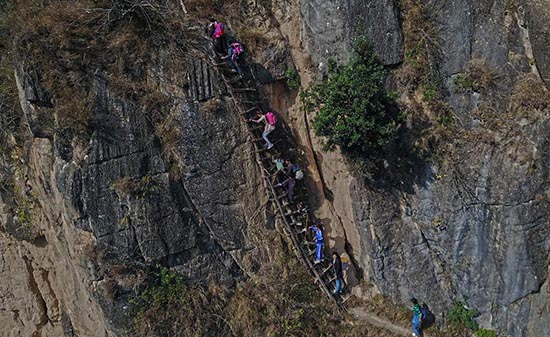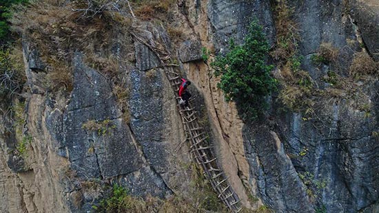 Ce lieu compte 700 habitants qui sont contraints quotidiennement de se livrer à une périlleuse ascension, à l’aide d’échelles des vignes ou de cordes d'acier pour assurer la sécurité. Un périple très dangereux, où plusieurs résidents y ont déjà fait une chute mortelle.