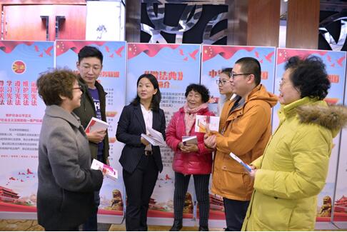 Le 3 décembre 2018, après la fin de la conférence sur la Constitution du Forum juridique de la communauté de la rue Chaowai, dans le district de Chaoyang, à Beijing, les résidents consultent Chu Hongwei, une avocate, sur leurs préoccupations juridiques. (Xu Ye / Le Quotidien du Peuple)