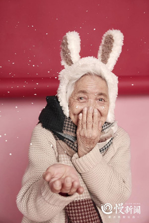 ? Au début, nous avons pensé que Grand-mère Luo n'aimerait peut-être pas porter des oreilles de lapin qui pourraient sembler trop infantiles. Cependant, en fin de compte elle était adorable avec ces petites oreilles ?, a déclaré le photographe, du nom de Xiaobao.