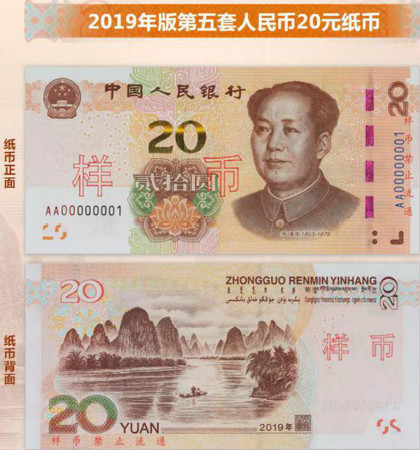 Le nouveau billet de banque de 20 yuan. (Photo / Site Internet de la banque centrale)