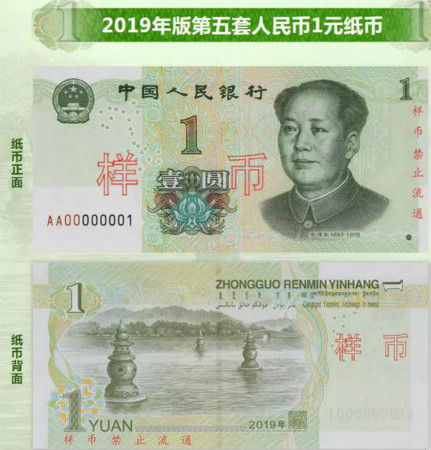 L'édition 2019 comprend des billets de 50, 20, 10 et 1 yuan, ainsi que des pièces de 1 yuan, 5 jiao et 1 jiao.