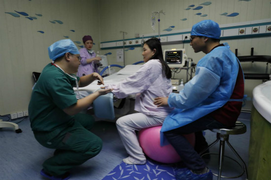Des médecins contr?lent l'état d'une femme enceinte à l'H?pital de santé maternelle et infantile n° 1 de Shanghai. (Yin Liqin / China News Service)