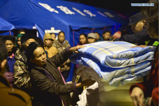 Moins d'une heure après le séisme, une équipe de dix membres de la police armée est arrivée sur le lieu de l'épicentre, le bourg de Hurun, à Jingxi, afin de mener des opérations de secours. Elle avait pour taches des opérations de recherche et de secours, la vérification des maisons endommagées et le déblaiement des routes après des éboulements, selon le centre de commandement régional de la police armée du Guangxi.