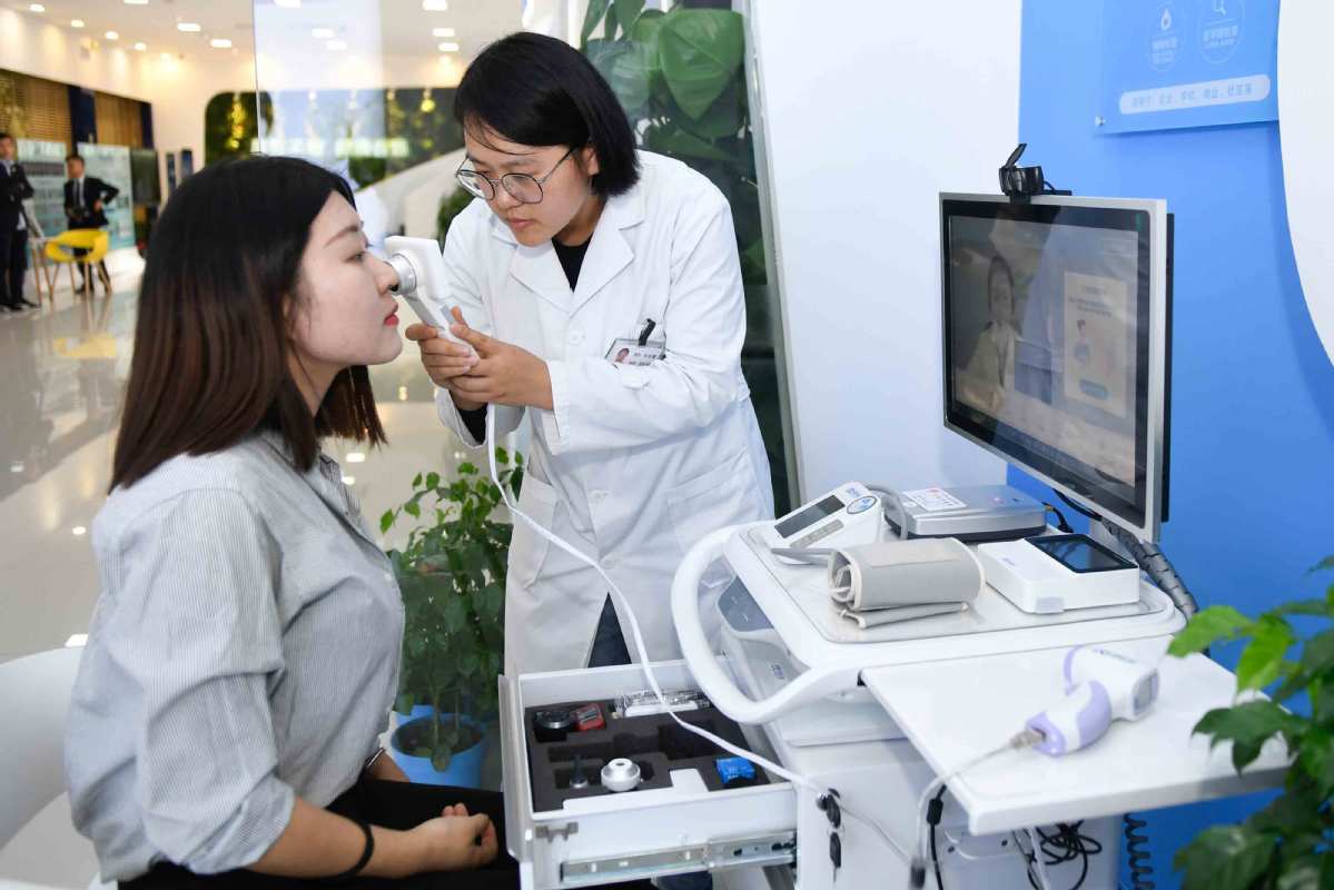 Une patiente se fait examiner à l'H?pital de l'Internet de Wuzhen, à Tongxiang, dans la province du Zhejiang (est de la Chine), en novembre. (Photo / Xinhua)