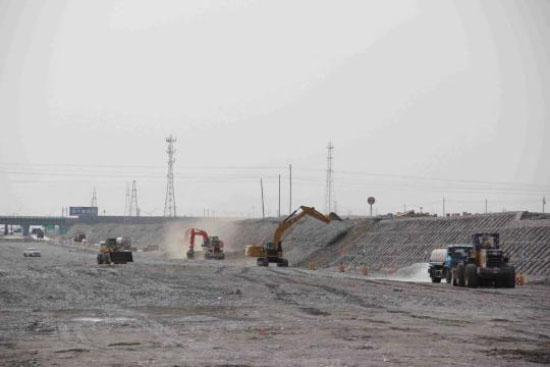L'expansion de la section Xiaocahu-Urumqi de l'autoroute G30 a officiellement repris. Le projet devrait raccourcir le temps de trajet entre Urumqi et le lac Xiaoca à Turpan à une heure lorsqu'il sera achevé fin ao?t. (Photo fournie à ChinaDaily)