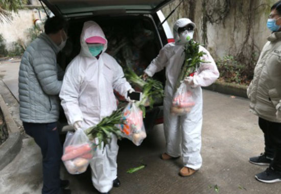Au Hubei, 3500 supermarchés en franchise de grande et moyenne taille fonctionnent normalement actuellement. Les entreprises de grande distribution et de services logistiques à Wuhan ont transformé leur mode d'opérations pour se concentrer principalement sur les achats groupés. Les achats en ligne sont livrés point-à-point aux quartiers. Une multitude de plateforme de e-commerce et d'entreprises logistiques, comme Alibaba, le service de livraison de Jingdong, Meituan et SF Express fonctionnent au maximum de leur capacité et sont très actives en première ligne.