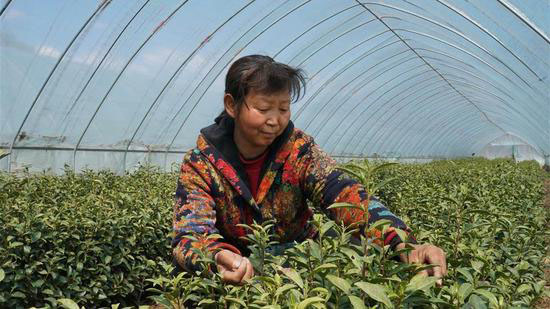 Un cultivateur de thé travaille dans une plantation de thé dans un comté pauvre de la province du Hebei (nord de la Chine), le 11 avril 2020. (Photo / Xinhua)