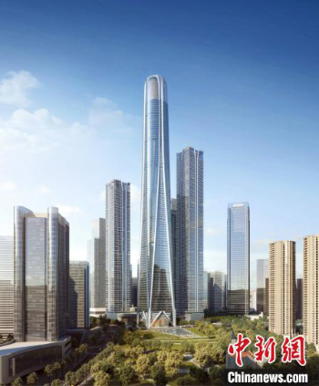 Croquis de conception d'un complexe construit dans le quartier central financier de Jiangbeizui, dans la municipalité de Chongqing. (Photo fournie à China News Service)