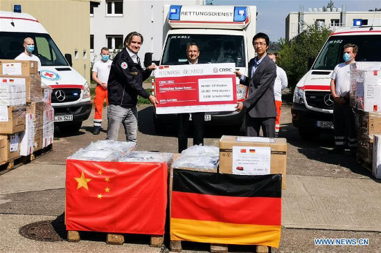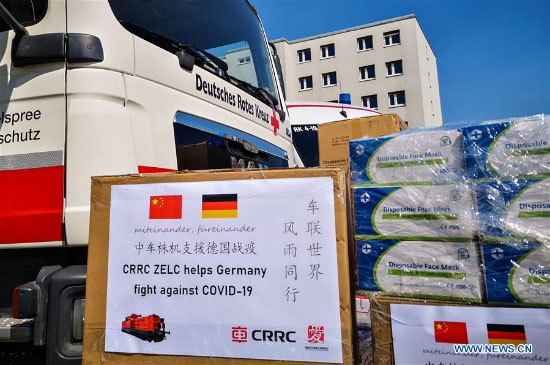 China Railway Rolling Stock Corporation (CRRC), le plus grand fabricant de matériel roulant ferroviaire au monde en termes de volume de production, a fait don le 24 avril de matériel médical à l'Allemagne via la Croix-Rouge allemande pour aider le pays à lutter contre le coronavirus.