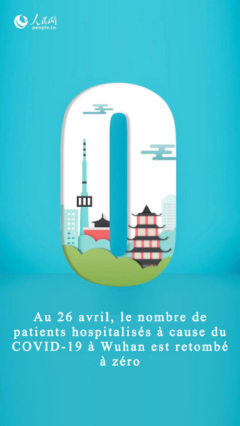 Au 26 avril, le nombre de patients hospitalisés à cause du COVID-19 à Wuhan est retombé à zéro, a annoncé Mi Feng, porte-parole de la Commission nationale de la santé et directeur adjoint de la Direction de communication lors d'une conférence de presse sur la prévention du COVID-19 du Conseil des affaires d'état, le gouvernement chinois.