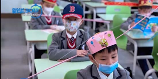 Hier à 8 heures, l'école primaire de Hangzhou Yangzheng a finalement accueilli les ? petits ma?tres ?, faisant la queue, mesurant la température, scannant leurs cartes, se désinfectant ... Dans des circonstances spéciales, les enfants ne peuvent entrer dans l'école qu'après des vérifications de contr?le. Ces enfants sont un peu spéciaux, car outre qu'ils portent des masques pour la prévention de l'épidémie, ils portent également divers chapeaux sur la tête, et chacun d'entre eux est très long.