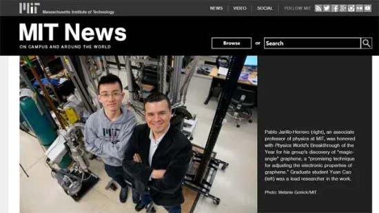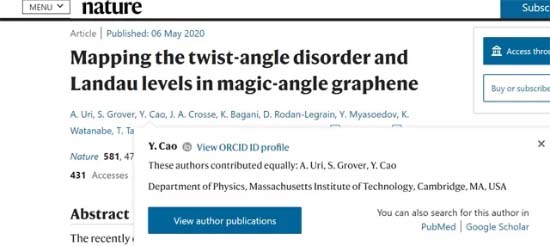 Le 6 mai, heure de Londres, Cao Yuan, né en 1996, un ancien étudiant de la promotion 2010 de l'Université des sciences et technologies de Chine et doctorant au Massachusetts Institute of Technology, a publié le même jour deux articles sur le graphène dans le dernier numéro de la revue scientifique de renommée mondiale ? Nature ?, l'un en tant que co-auteur correspondant et l'autre en tant que co-auteur principal.