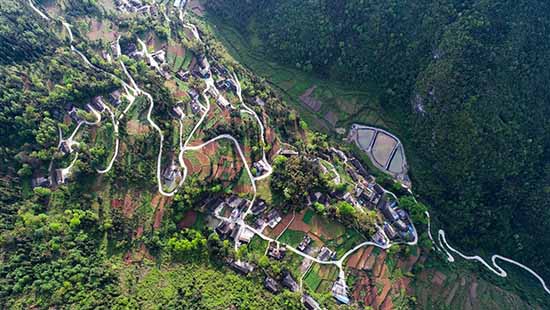 La route construite dans le village du comté autonome Miao de Songtao, à Tongren, dans la province du Guizhou (sud de la Chine), a résolu les problèmes de déplacement des villageois. Photo prise le 25 avril. (Long Yuanbin / Pic.people)